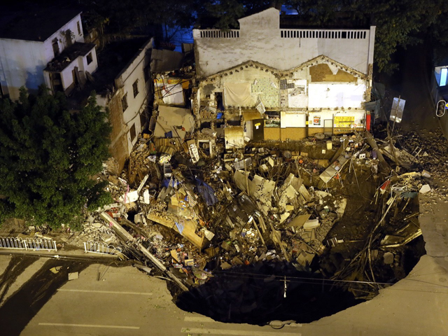 ระทึก!! หลุมยุบที่จีน ลึกกว่า 9 เมตร ทำตึกถล่ม 3 ตึก