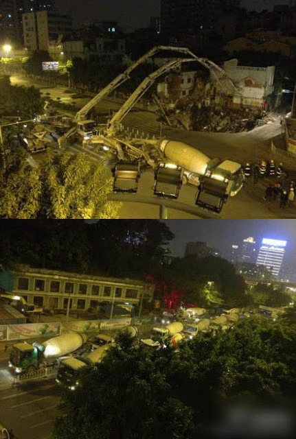 กระทั่งเวลา 20.00 น. หน่วยกู้ภัยได้เทคอนกรีตลงไปเติมในส่วนที่เกิดหลุมยุบ ซึ่งจะทำให้มั่นใจได้ว่าจะไม่เกิดปรากฎการณ์หลุบยุบอีก