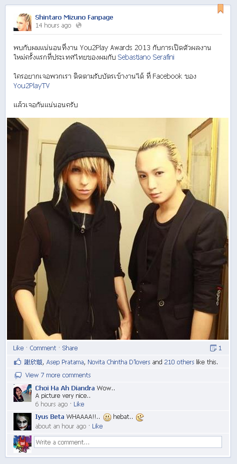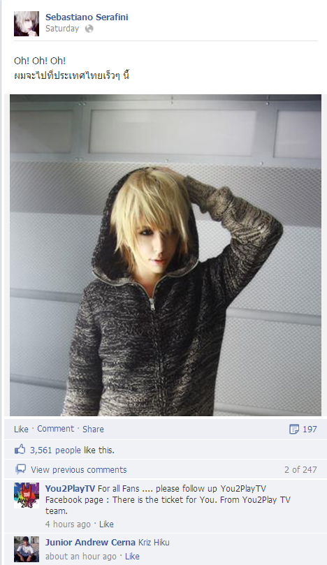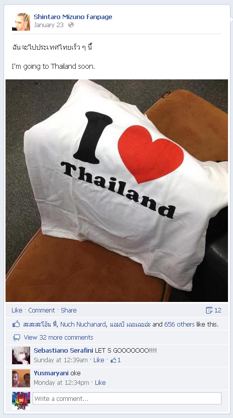 ตรงมาโปรโมทตัวโปรเจ็คท์ล่าสุด ‘Sevastrophy’ ที่ประเทศไทยเป็นครั้งแรก! ในงาน ยูทูเพลย์ อะวอร์ดส์ ล่าสุดชินทาโร่และเซบะก็ออดอ้อนสาวไทยด้วยการโพสข้อความลงเฟสบุ๊คส่วนตัวและแฟนเพจว่า...