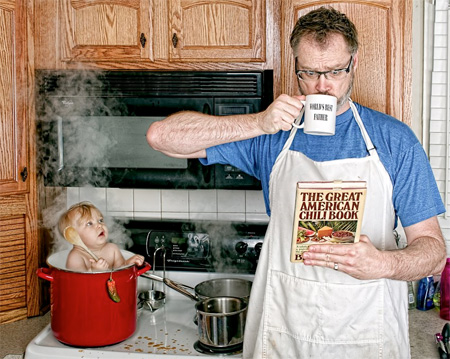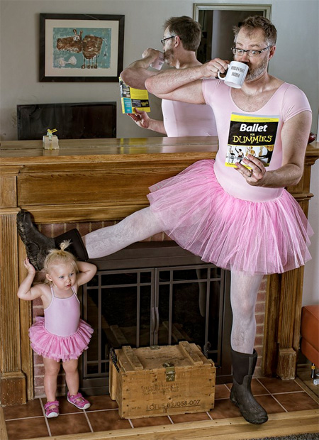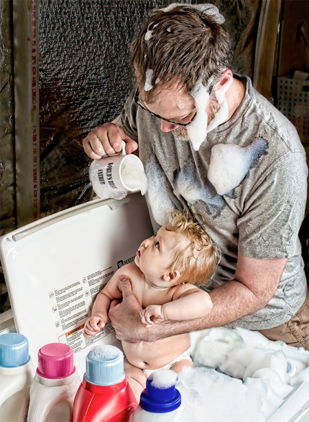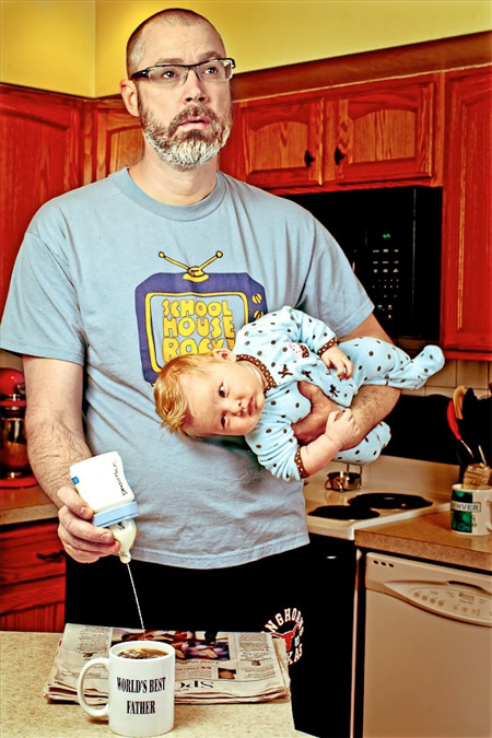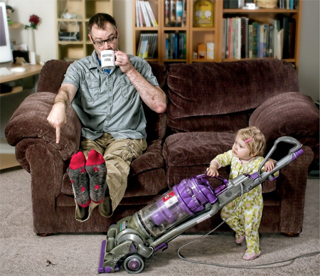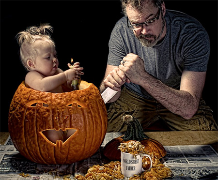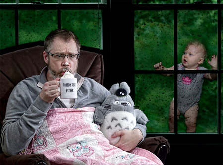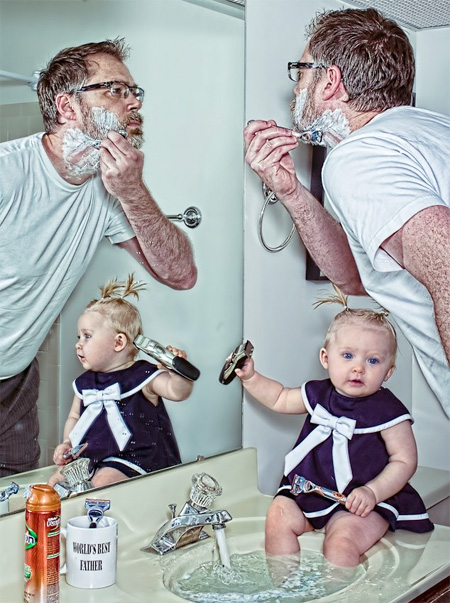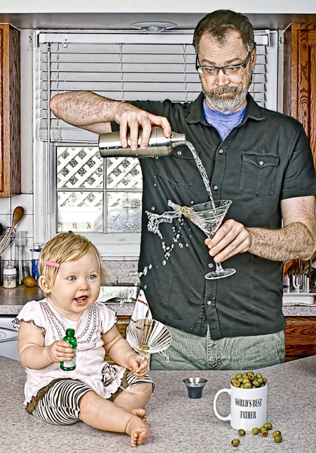 ช่างภาพอารมณ์ดีชาวอเมริกันชื่อ Dave Engledow ได้เซ็ตพร็อพเพื่อถ่ายภาพ จากคอนเซปต์ "พ่อที่ดีที่สุดในโลก" โดยได้สร้างสรรค์ผลงานผสานอารมณ์ขันในการถ่ายภาพ พร้อมตกแต่งด้วยโปรแกรมให้ออกมาดูแล้วเป็นคุณพ่อที่สอนลูกให้เรียนรู้โลกกว้างใบนี้ได้อย่างดีเยี่ยม