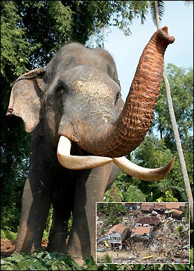 ที่ ประเทศไทยมีรายงานช้างแสดงอาการเคร่งเครียดร้องแผดเสียงอย่างต่อเนื่องหนึ่ง วันก่อนเกิดเหตุ และช่วงหนึ่งชั่วโมงก่อนคลื่นยักษ์จะมา มีช้างบางตัวที่วิ่งหนีจากชายทะเลขึ้นพื้นที่สูง คุณคริส ครุซ ครูสอนดำน้ำที่ภูเก็ต นั้นล่วงรู้เหตุการณ์ล่วงหน้าจากฝูงโลมา “มันกระโดดไปมาข้างหน้าเรือผมเลย ผมจึงรู้ว่ามีบางสิ่งบางอย่างผิดปกติ”