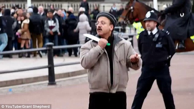 ชายคลุ้มคลั่งใช้มีดจี้คอตัวเอง บริเวณพระราชวังบัคกิ้งแฮม พาเลซ