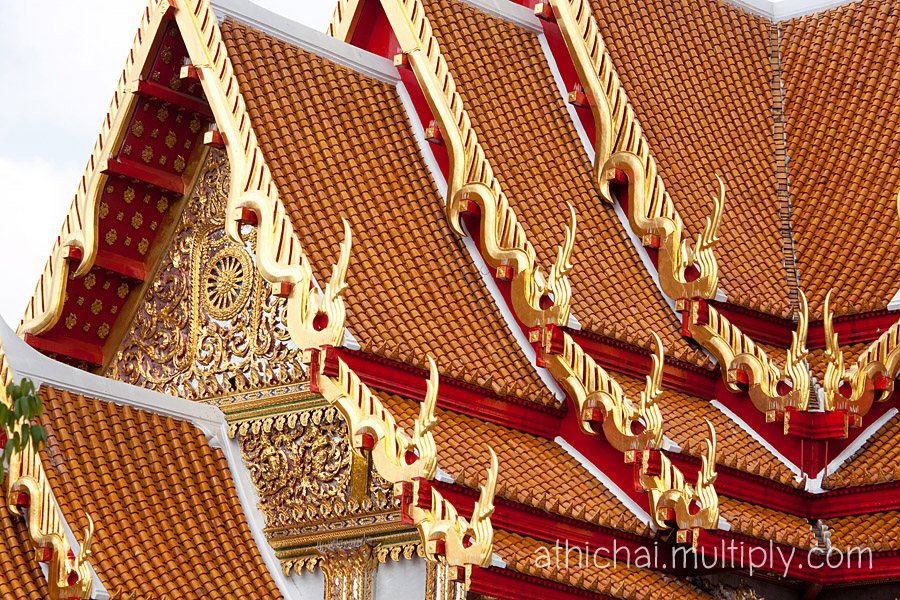 ท่านทั้งหลายเคยสังเกตุหลังคาโบสถ์ วิหาร หรือศาลาการเปรียญตามวัดต่างๆแล้วสงสัยไหมว่าทำไมวัดจึงใช้กระเบื้องมุงหลังคาที่มีสีสันต่างๆสลับกันไป เช่น สีเขียว สีเหลือง สีส้ม สีน้ำเงิน ซึ่งแตกต่างจากกระเบื้องที่มุงหลังคาตามบ้านเรือนของคนทั่วๆไปที่มักจะใช้สีเดียว