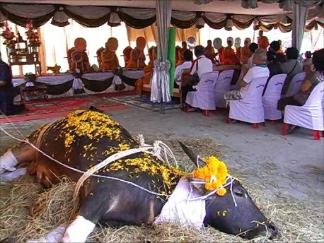 พระนครศรีอยุธยา - ประชาชนชาวกรุงเก่ากว่า 500 คนร่วมพิธีฝังร่าง "เจ้าคล้าว" กระบือที่พระเจ้าหลานเธอ พระองค์เจ้าพัชรกิติยาภา ทรงไถ่ชีวิตมาจากโรงฆ่าสัตว์ และประทานให้ทางโตนดเตี้ยเลี้ยง หลังถูกคนร้ายขโมยไปและฆ่า ท่ามกลางเสียงแช่งด่าคนร้ายให้ตายตามควายไป เมื่อเวลา 17.00 น.วันนี้ (17 ก.พ.) ที่วัดโตนดเตี้ย ต.อุทัย อ.อุทัย จ.พระนครศรีอยุธยา ได้มีพิธีการฝังควายเพศผู้ชื่อ "คล้าว" ที่ถูกคนร้ายขโมยไปจากวัดเมื่อวันที่ 14 ก.พ.ที่ผ่านมา หลังจากเจ้าหน้าที่ติดตามจนพบ แต่ก็ไม่ทันที่จะช่วยชีวิตเจ้าคล้าวได้ และถูกฆ่าเสียก่อน โดยในพิธีมี นางสมทรง พันธ์เจริญวรกุล นายก อบจ.พระนครศรีอยุธยา เป็นประธานฝ่ายฆารวาส พระครูสุทธิปัญญาโสภณ เจ้าอาวาสวัดท่าการ้อง รองเจ้าคณะอำเภอพระนครศรีอยุธยา