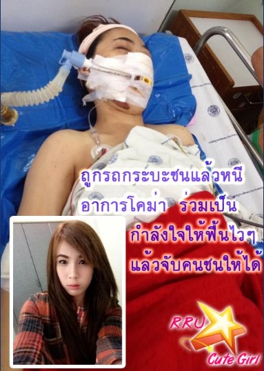น้องมะนาว ครุฯ อิ้งค์ ปี 4 หลังจากเธอประสบอุบัติเหตุถูกรถกระบะชนรถจักรยานยนต์ของเธอ แล้วขับหลบหนี เหตุเกิดบนถนนศรีโสธรตัดใหม่ (ถนนโลกี) จากภาพน้องอยู่ในอาการโคม่า ยังไม่ได้สติ ใช้เครื่องช่วยหายใจ แต่ตอนนี้น้องได้เสียชีวิตไปแล้วจากอาการสมองตาย