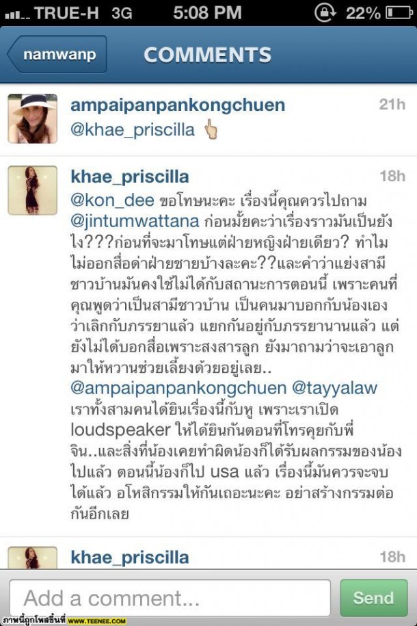 เปิดศึกผ่านigไปที่เรียบร้อยเเล้วสำหรับสาวhisoน้ำหวานที่เป็นมือที่สามของสามี หนิง-จิน ธรรมะวัฒนะ โดยอาข้อความออกมาโชว์ที่จินส่งให้ลูกสาวของตนเอง มาโชว์ผ่านอินสตาแกรม