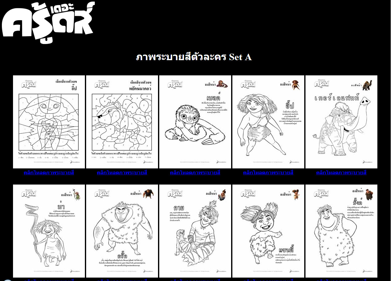 Click เพิ่มดาวน์โหลด ภาพระบายสี เดอะ ครูดส์ http://202.142.215.98/moviePage/TheCroods/Croods_colorA.html