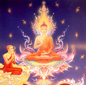 แปลว่า ดูก่อนอานนท์ ธรรมและวินัยใดที่เรา ได้แสดงแล้วและบัญญัติแล้วแก่เธอทั้งหลาย ธรรมและวินัยนั้นจักเป็นศาสดาของเธอทั้งหลายในเมื่อเราล่วงลับไป หมายความว่า พระพุทธเจ้าตรัสสั่งให้คำสั่งสอนของพระองค์เป็นศาสดาแทนพระองค์