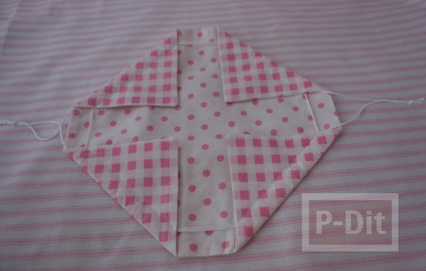 - พับมุมทั้งสี่ลงมา เหลือส่วนตรงกลางไว้ประมาณ 3 นิ้ว
