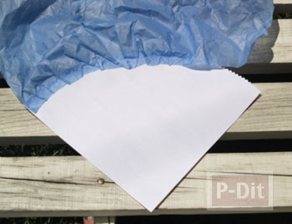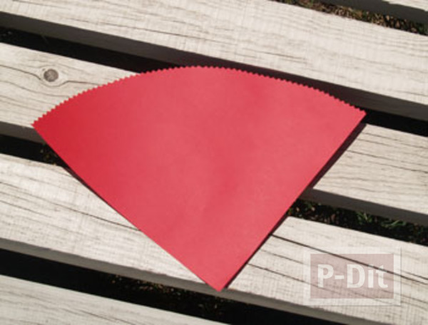 - นำกระดาษห่อของขวัญ มาเป็นรูปวงกลมแล้วตัดสี่ส่วน (รัศมี 6 นิ้ว)