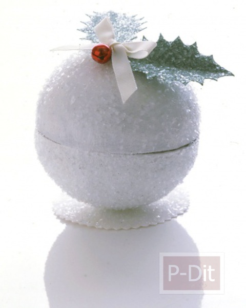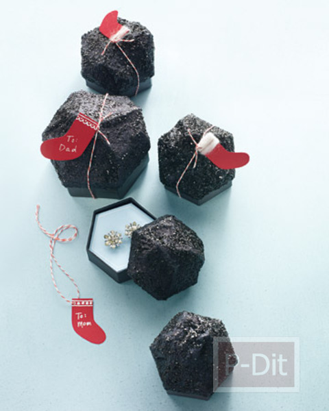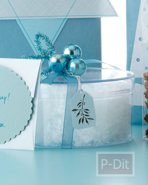 - ใส่ของขวัญชิ้นเล็กๆไว้ด้านใน ผูกกระดาษด้านบนรัดด้วยริบบิ้น เป็นโบว์