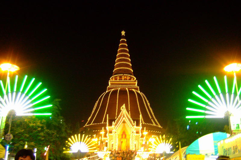 สิ่งที่ชาวนครปฐมภาคภูมิใจและเคารพบูชาอย่างสูงสุดคือองค์พระปฐมเจดีย์ เป็นมหาเจดีย์ทรงระฆังคว่ำ ยอดแหลมเสียดฟ้า บุกระเบื้องโมเสค สีทองอร่ามตระการตา ใครมานครปฐมจะมองเห็นองค์มหาเจดีย์สูงเด่นเป็นสง่าอยู่แต่ไกล... ความสูงขององค์มหาเจดีย์นั้น ตำราว่าสูงชั่วนกเขาเหิน คือสูงสุดเพดานบินของนกเขานั่นแหละ จนร่ำลือกันว่าสูงจนไม่มีเงา คือเงาเจดีย์ตกไม่พ้นฐาน ส่วนความกว้างของฐานนั้นเดินกันลิ้นห้อยกว่าจะรอบ เป็นปูชนียสถานที่ใหญ่ที่สุดในโลก...!