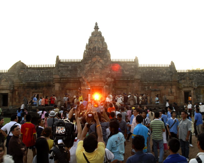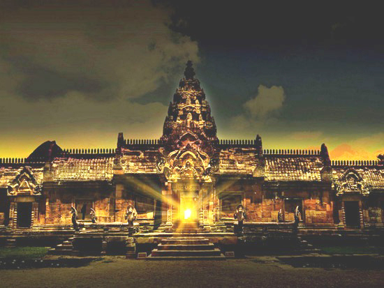 ด้วย ปราสาทหินพนมรุ้ง เป็นปราสาทหินเก่าแก่ศิลปะขอม ที่รังสรรค์จากภูมิปัญญาอันแยบยลของคนโบราณ ที่อาศัยพื้นฐานตามความเป็นไปของธรรมชาติ จนก่อให้เกิดความอัศจรรย์ที่แสดงให้เห็นถึงความมีอัจฉริยะในการสร้างปราสาทหิน นั้นคือ ปรากฏการณ์ที่ในรอบ 1 ปี จะมีช่วงเวลาที่พระอาทิตย์ขึ้น – ตก ตรง 15 ช่องบานประตูของปราสาทหินพนมรุ้งอย่างน่าพิศวง ด้วยความเชื่อนับพันปีที่ปราสาทหินแห่งนี้ เป็นศาสนสถานที่สร้างถวายแด่องค์พระศิวะเทพเจ้าสูงสุดในศาสนาฮินดู ลัทธิไศวนิกาย บนเขาภูเขาไฟที่ดับสนิทแล้ว ศาสนสถานแห่งนี้จึงเปรียบเสมือนเป็นเครื่องหมายของศูนย์กลางแห่งจักรวาล