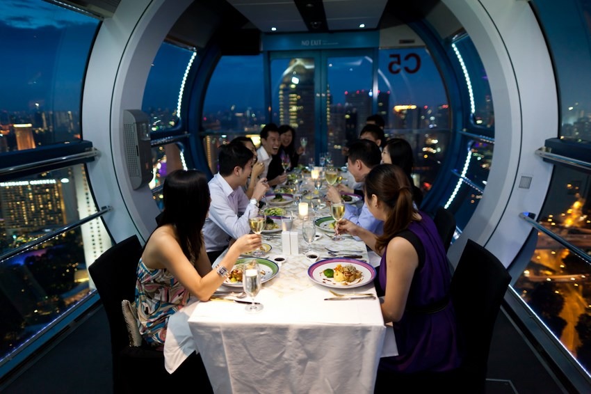 สิงคโปร์ฟลายเออร์ (Singapore Flyer) ถูกออกแบบเป็นแคปซูลรูปทรงกระบอกมีกระจกช่วยปกป้องรังสี UV ได้ ดังนั้นผู้เยี่ยมชมสามารถมองเห็นวิวของเมืองสิงค์โปร์ได้ไกลสุดลูกหูลูกตาแล้วยังมองเห็นวิวที่อยู่ด้านล่างได้อีกด้วย แต่ละแคปซูลจะมีแอร์ปรับอากาศทำให้รู้สึกเย็นสบายพอเหมาะกับพื้นที่ 28 ตารางเมตร นอกจากนี้ยังมีม้านั่งเล็กๆ ไว้สำหรับคนที่มีความกล้าน้อยให้ได้เพลิดเพลินไปกับการชมวิวพร้อมกับความสะดวกสบายด้วยไม่ต้องกังวลและการหมุนแต่ละรอบใช้เวลาประมาณครึ่งชั่วโมง แต่ละแคปซูลจุคนได้ 28 คน นอกจากนี้ยังมีเสียงบรรยายมุมมองทัศนียภาพต่างๆ ที่คุณมองเห็นได้รอบทิศ หรือว่าคุณจะเพิ่มสีสันด้วยการเลือกแพ็คเกจจากที่เค้ามีให้อยู่แล้วก็ได้เช่นกัน ตัวอย่างเช่น ถ้าคุณต้องการความเป็นส่วนตัวเพื่อสวีทกับคู่รักของคุณ คุณก็เลือกแบบค็อกเทลหรือแชมป์เปน พร้อมกับมีของหวานต่างๆ ที่มีการคัดสรรมาเป็นอย่างดี