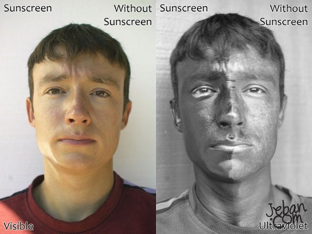 (Picture from Wikipedia, the free encyclopedia, File:UV and Vis Sunscreen.jpg)