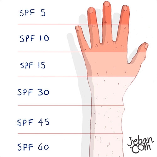 SPF (Sun Protection Factor) คือสิ่งที่บอกสาวๆว่าครีมกันแดดตัวนี้สามารถช่วยกันไม่ให้แสงแดดทำร้ายผิว จากปรกติของแต่ละบุคคลได้กี่เท่า ขยายความให้ละเอียดคือ ถ้าตัว จขกท.ยืนกลางแดดโดยไม่ทาอะไรเลยตอน 11 โมงเช้า ประมาณ 15 นาทีผิวของ จขกท. จะเปลี่ยนเป็นสีแดง ถ้าจขกท. ทาครีมกันแดดที่มี SPF 10 แล้วยืนกลางแดด ณเวลาเดียวกัน ผิว จขกท. จะเปลี่ยนเป็นสีแดง ภายในเวลา 150 นาที (อันนี้เป็นการสมมติให้เข้าใจ และการเปลี่ยนสีของผิวคนจะต่างกัน ในหลายๆปัจจัย)