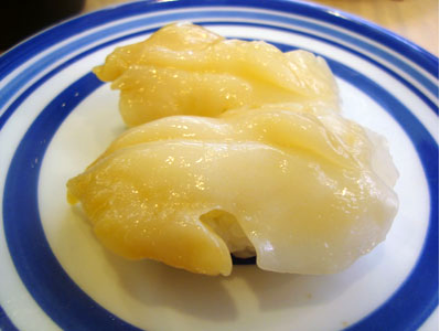 10.Tsubu Kai (つぶ貝) ซูชิ หน้าหอย เป็นหอยที่นุ่มมาก นุ่มพอๆกับ หอยเป๋าอื้อเลยทีเดียว มีทั้งความหอมและหวานในเวลาเดียวกัน ทำให้สู้สึกนุ่มละมุนลิ้น สาวๆจึงชอบมาก