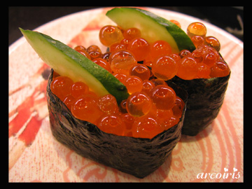 5.Ikura ( いくら) ซูชิ หน้าไข่ปลาแซลมอน (ความแตกต่างระหว่างของไทยกับญี่ปุ่น) ด้วยขนาดของไข่ที่ฝองใหญ่มากบวกกับชิ้นใหญ่ สีสันสดใสหน้าทานมากๆ เลยครับ ท่าจะสนุกปากกับการกัดไข่ให้ดังกรุบๆ