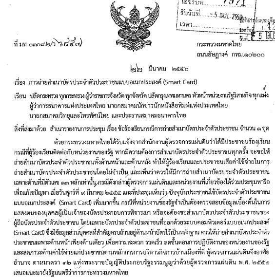 เพื่อแก้ไขปัญหา เมื่อวันศุกร์ที่ ๙ มีนาคม ๒๕๕๕ และที่ประชุมเห็นว่า ปัจจุบันประชาชนใช้บัตรประจำตัวประชาชน
