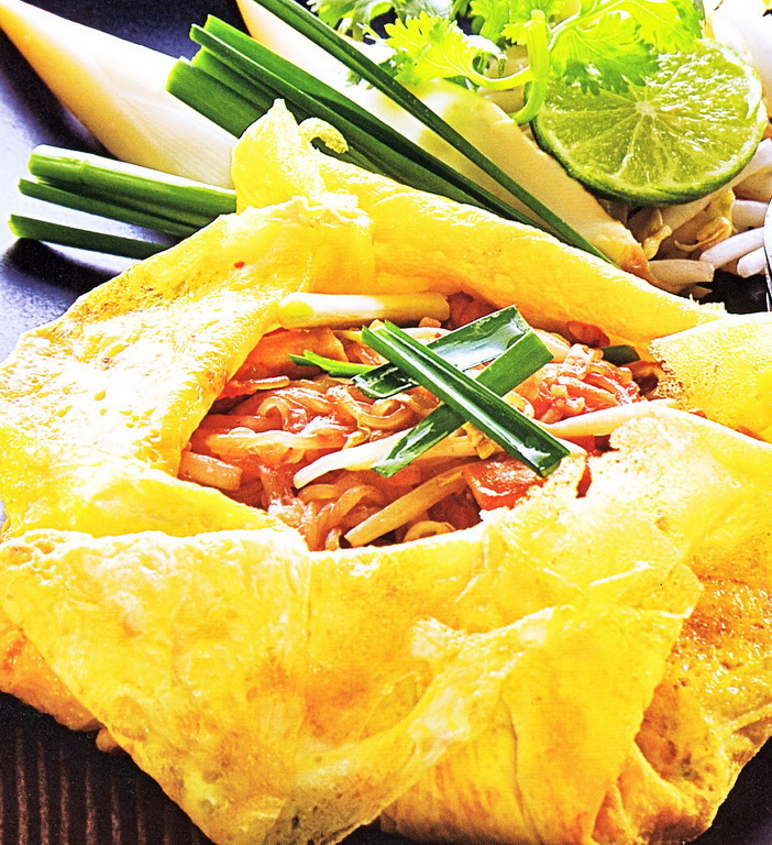 ผัดไทยห่อไข่เป็นเมนูผัดไทย ที่ดัดแปลงนำหลักการทำไข่เจียวและผัดไทยมาผสมผสานกันได้อย่างอร่อยลงตัว ด้วยการเจียวไข่เป็นแผ่นๆบางๆห่อใส้ผัดไทยไว้ข้างใน เป็นการเพิ่มสีสันและรสชาติให้อาหารได้ดี