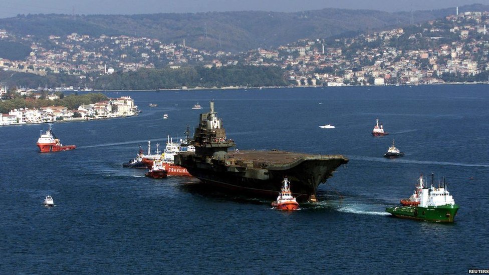 การก่อสร้างเรือหยุดลงตั้งแต่ปี ค.ศ. 1992 โดยยังไม่ได้ติดตั้งระบบอิเลคทรอนิกส์ เนื่องจากขาดงบประมาณ และเมื่อโซเวียตล่มสลายลง เรือลำนี้ก็ตกเป็นของประเทศยูเครนและถูกจอดทิ้งไว้โดยไม่ได้บำรุงรักษา ถูกนำออกมาประมูลในปี ค.ศ. 1998 ในฐานะเรือเปล่า ไม่มีเครื่องยนต์ หางเสือ และระบบควบคุม และประมูลได้ไปในราคา 20 ล้านดอลลาร์สหรัฐ โดยบริษัทท่องเที่ยวจากมาเก๊า ซึ่งระบุว่าจะนำเรือลำนี้ไปสร้างเป็นคาสิโนลอยน้ำที่ท่าเรือมาเก๊า เช่นเดียวกับเรือบรรทุกเครื่องบินลำอื่นๆ ของโซเวียตที่เคยถูกบริษัทจีนประมูลไปเป็นสถานที่ท่องเที่ยว คือ เรือบรรทุกเครื่องบินเคียฟทอดสมออยู่ที่เทียนจิน และเรือบรรทุกเครื่องบินมินสก์ทอดสมออยู่ที่เซินเจิ้น