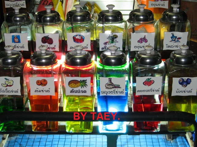 อาทิเช่น ซาสี่ ลิ้นจี่ สตอบอรี่ โคล่า แอ๊บเปิ้ล เบียร์หวาน สละ แคนตาลูป กระทิงแดง น้ำผึ้งผสมมะนาว ครีมโซดา บลูเบอรี่ องุ่น สับปะรด เอ็ม 150 และสูตรผสมค๊อกเทล สามารถผสมขายเหล้าปั่นได้อีกด้วย