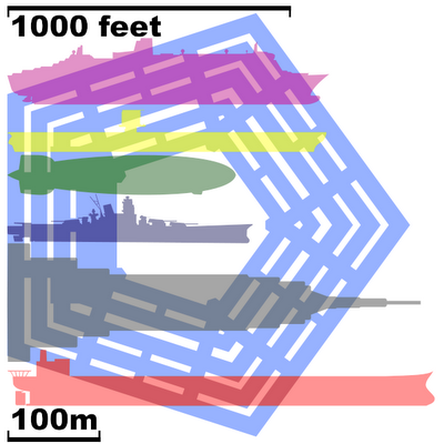 - เรือบรรทุกเครื่องบิน ยูเอสเอส เอ็นเตอร์ไพร์ส 342 เมตร ( สีเหลือง )