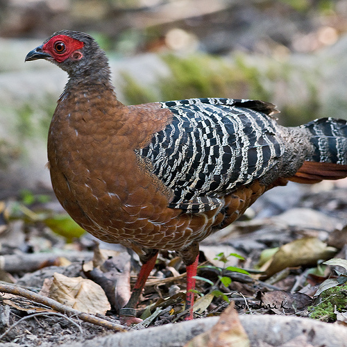 ไก่ฟ้าพญาลอเป็นไก่ฟ้าที่มีความสวยงามที่สุดชนิดหนึ่งของประเทศไทย เป็นไก่ขนาดกลาง ยาวประมาณ 80 ซม. ตัวผู้มีหน้ากากสีแดงสด บนหัวมีเส้นขนแตกพุ่มตรงปลายสีดำเหลือบน้ำเงินยาวโค้งไปด้านหลัง ปากสีเหลืองขุ่น รอบคางใต้หน้ากากลงมามีขนสีดำ ลำตัวด้านบน อก คอ และปีกมีสีเทา ลักษณะเด่นคือ ขนตอนท้ายของลำตัวใกล้โคนหางจะมีสีเหลืองแกมสีทองเห็นได้ชัดเจนขณะกระพือปีก ขนคลุมโคนหางมีสีดำเหลือบน้ำเงินขอบสีแดงอิฐซ้อนกันหลายชั้น หางมีสีดำเหลือบเขียวยาวและโค้งลง ขนคลุมปีกมีลายสีดำขอบขาว ท้องสีดำ แข้งสีแดงมีเดือย ตัวเมียหน้าสีแดง บริเวณหน้าอก คอ หลังมีสีน้ำตาลแกมแดง ท้องมีลายเกล็ดน้ำตาลแดงขอบสีขาว ปีกมีสีดำสลับด้วยลายสีขาวตามแนวขวาง หางคู่บนสีดำสลับขาวส่วนคู่ล่างถัดลงมา สีน้ำตาลแกมแดง แข้งสีแดงไม่มีเดือย