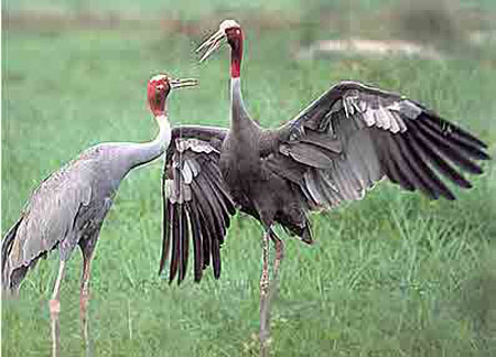 นกกระเรียนมักอาศัยอยู่ในพื้นที่ชุ่มน้ำ หรือนาข้าวที่ไม่ได้เพราะปลูกที่มีน้ำท่วมขัง (ในพื้นที่เรียกว่า khet-taavadi) สำหรับสร้างรัง การจับคู่ผสมพันธุ์มักจะเกิดในพื้นที่ชุ่มน้ำตามธรรมชาติมากกว่าแต่ก็ยังมีในนาข้าวหรือข้าวสาลีบ่อยๆ