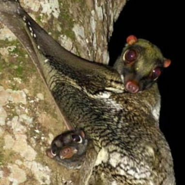 มีรูปร่างคล้ายกระรอกบินขนาดใหญ่ ผิวหนังย่น ตามีขนาดใหญ่สีแดง ใบหูเล็ก มีนิ้วทั้งหมด 5 นิ้ว สีขนมีหลากหลายมาก โดยสามารถเปลี่ยนไปตามสภาพแวดล้อม ทั้งน้ำตาลแดง หรือเทา รวมทั้งอาจมีลายเลอะกระจายไปทั่วตัวด้วย โดยตัวเมียมีสีอ่อนกว่าตัวผู้ หางมีลักษณะแหลมยาว มีพังผืดเชื่อมติดต่อกันทั่วตัว โดยเชื่อมระหว่างขาหน้าและขาหลัง ขาหลังกับหาง ระหว่างขาหน้ากับคอ และระหว่างนิ้วทุกนิ้ว มีความยาวหัวและลำตัวโตเต็มที่ราว 34-42 เซนติเมตร หาง 22-27 เซนติเมตร น้ำหนัก 1-1.8 กิโลกรัม
