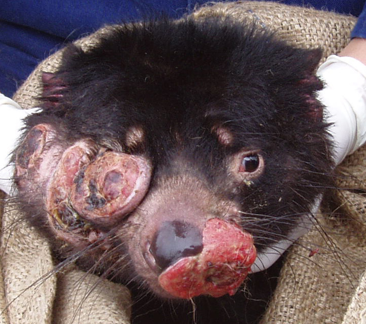 ปัจจุบันแทสเมเนียนเดวิลกำลังอยู่ในภาวะใกล้สูญพันธุ์ สืบเนื่องจากเกิดโรคระบาดที่ทำให้เกิดการติดเชื้อและเป็นเนื้องอกคล้ายมะเร็งบริเวณใบหน้า (Devil facial tumour disease - DFTD) มาตั้งแต่ปลายทศวรรษ 1990 ทำให้ประชากรลดลงอย่างรวดเร็ว นักวิทยาศาสตร์ประเมินว่าหากไม่สามารถคิดค้นหาวิธีรักษาได้ แทสเมเนียนเดวิลจะสูญพันธุ์ภายในปี ค.ศ. 2035