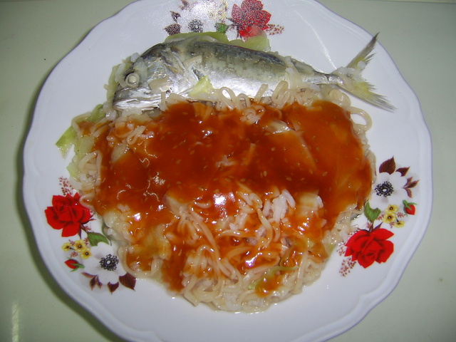 มาม่าปลากระป๋องใส่บร็อคโคลี่และข้าวโพดอ่อน