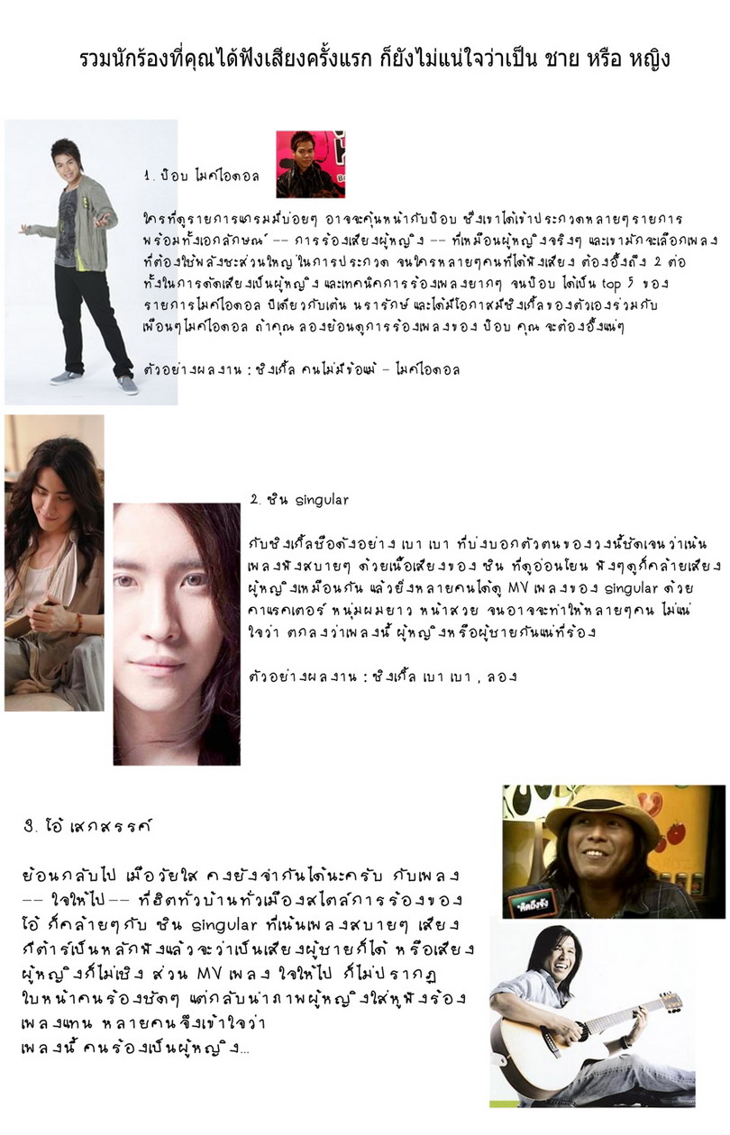รวมนักร้องที่คุณได้ฟังเสียงครั้งแรก ก็ยังไม่แน่ใจว่าเป็น ชาย หรือ หญิง