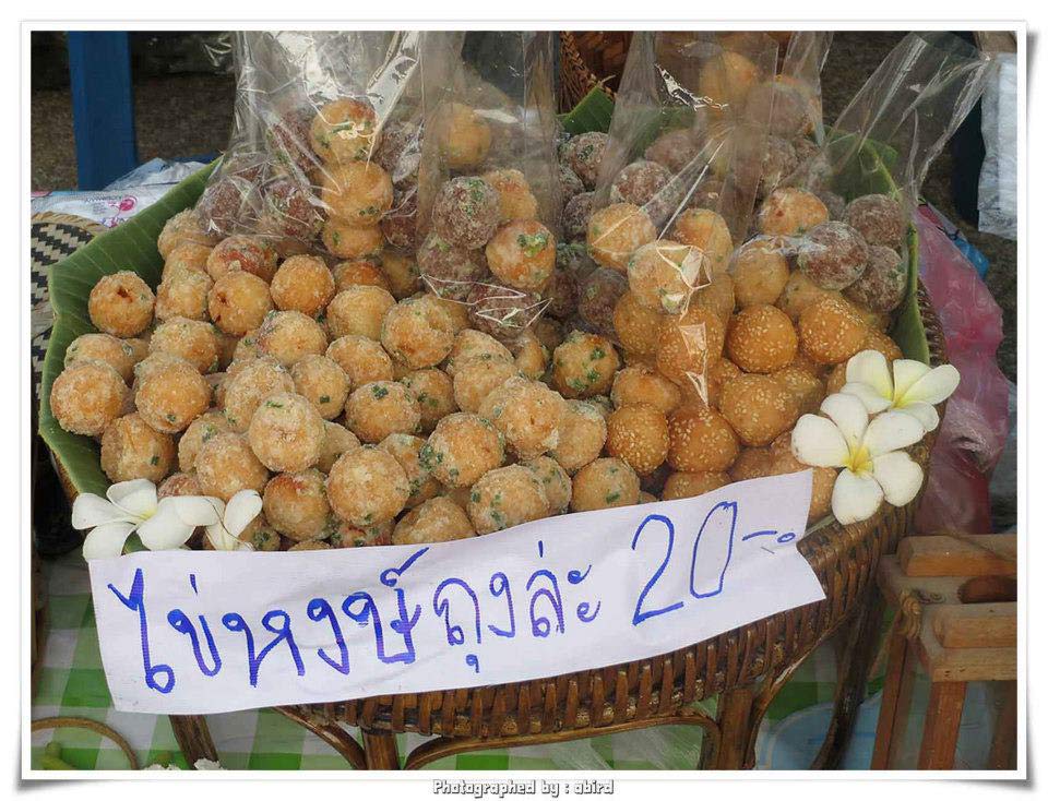 เดินถือถาดใส่ขนมเร่ขายให้รถที่ติดไฟแดงอยู่