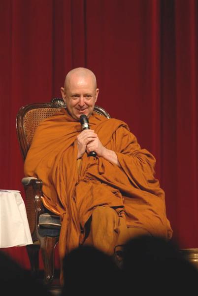 และจ้องดู พระหนุ่มชาวอเมริกัน ซึ่งเพิ่งบวชใหม่ ๆ ที่นั่งอยู่ข้าง ๆ อาตมา