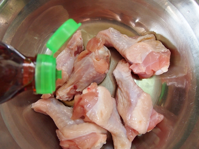 -ล้างไก่ให้สะอาดและหมักด้วยน้ำปลาประมาณ10นาที