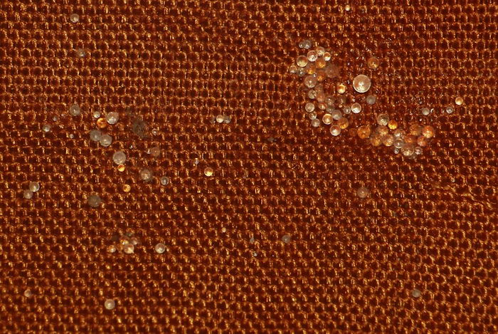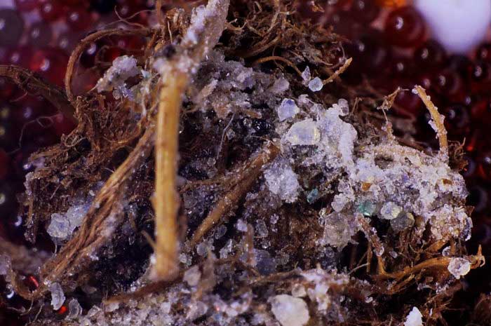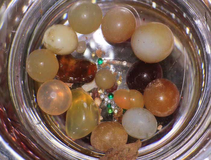 แต่เมื่อใช้กล้องติดเลนส์ขยายพิเศษ พบว่ามีเศษอาหารและวัตถุทรงกลมเล็ก ๆ หลาย ๆ ชิ้นอยู่ในน้ำ และที่ผิวน้ำพบวัตถุสีใสลอยอยู่เป็นระยะ