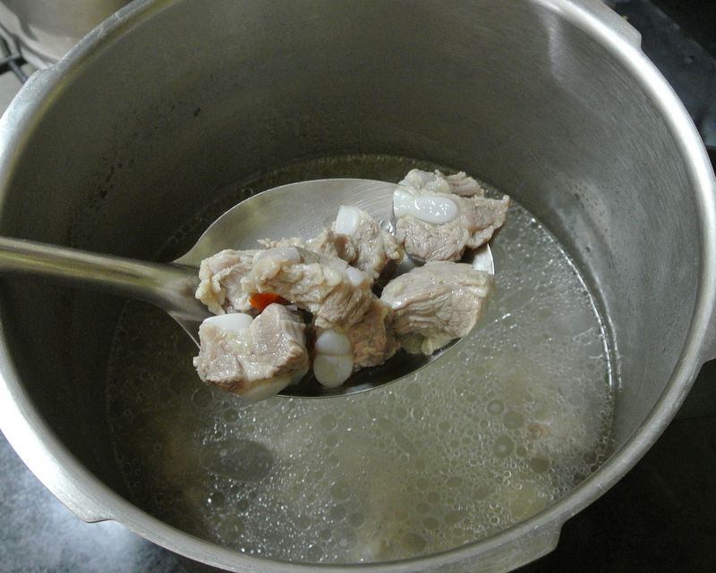 ซี่โครงหมู นำไปต้มให้เปื่อยโดยหม้อความดัน