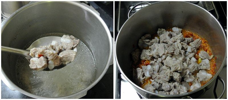 ใส่ซี่โครงหมูที่ต้มเปื่อยแล้วลงไป