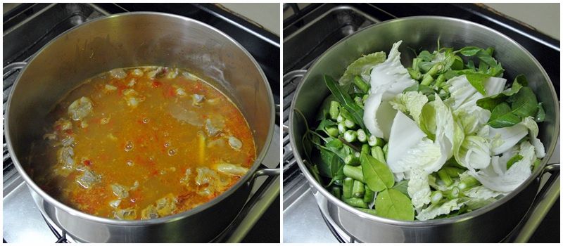 ใส่ผักลงไปในหม้อ