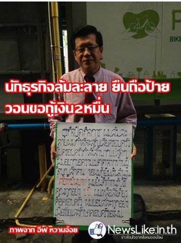 นักธุรกิจล้มละลาย ยืนถือป้าย วอนขอกู้เงิน 2 หมื่น