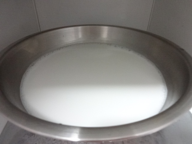 2. เทใส่ภาชนะ พักไว้ให้เย็น เราแช่ในอ่างเลยค่ะจะได้เย็นเร็ว