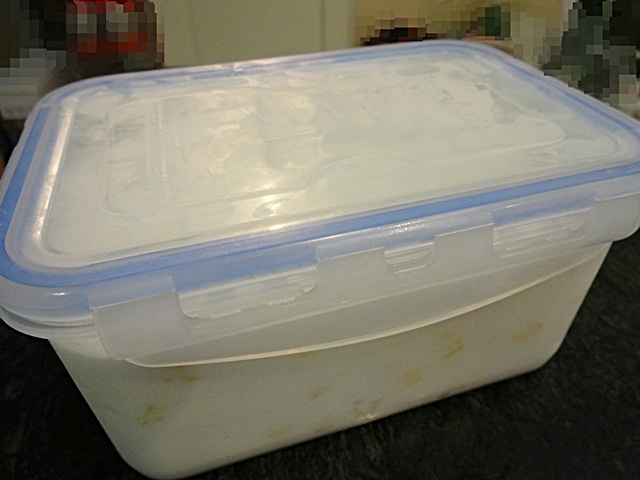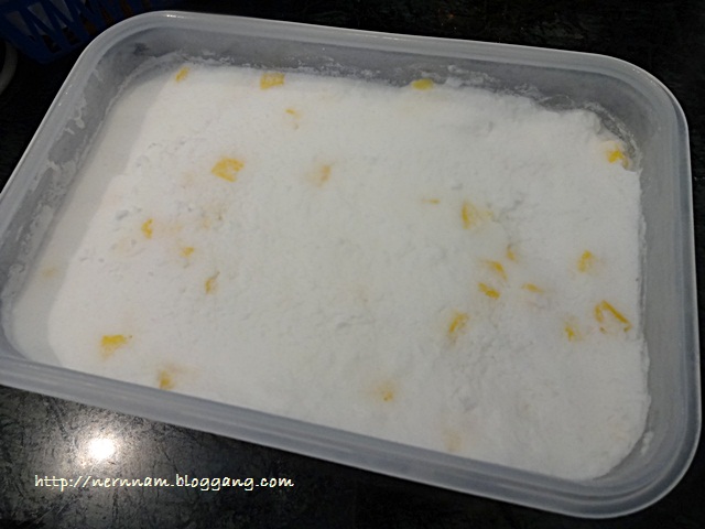 3. เมื่อกะทิเย็นแล้วก็นำเข้าตู้แช่แข็งเลยค่ะ