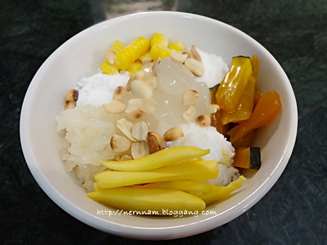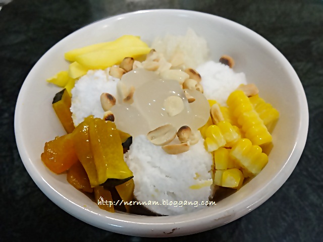 แล้วแต่ชอบนะคะ เราใส่ข้าวเหนียวมูน ฟักทองเชื่อม ขนุน ลูกชิด ข้าวโพดและถั่วลิสงคั่ว