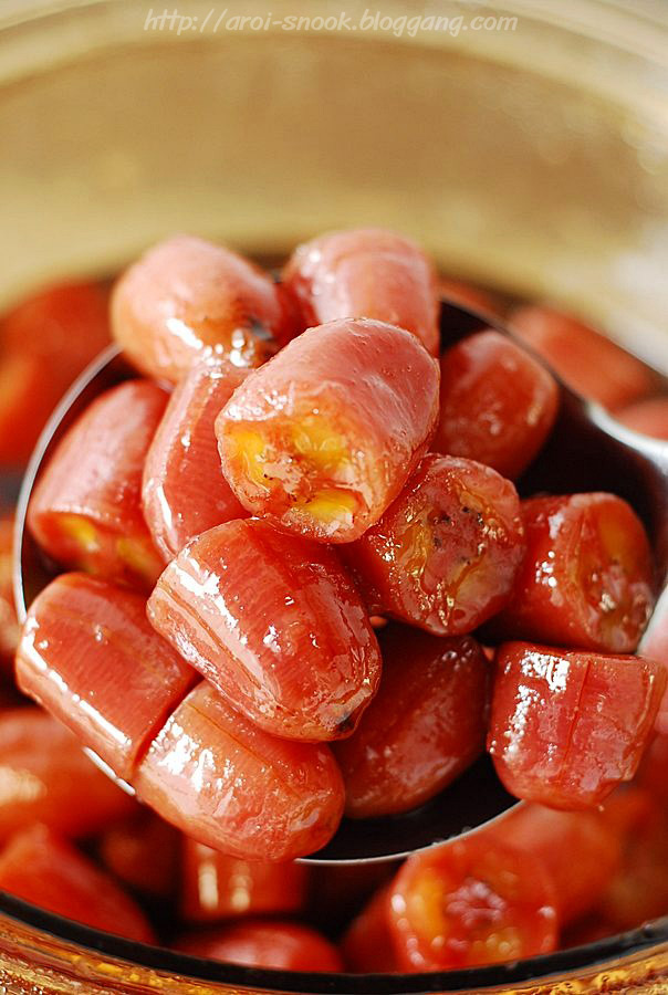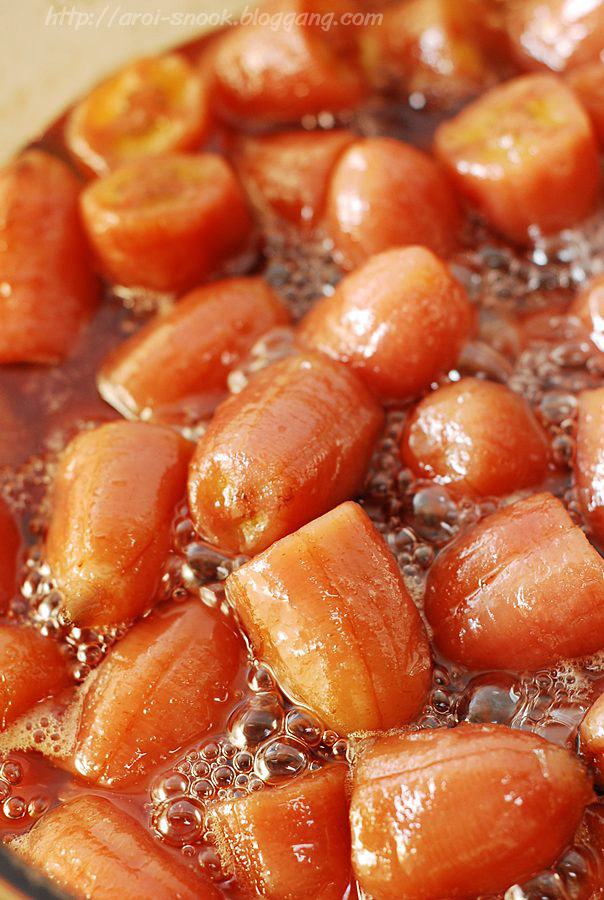 กล้วยเชื่อมของเราก็จะเริ่มเปลี่ยนสีเป็นสีแดงขึ้นเรื่อย ๆ