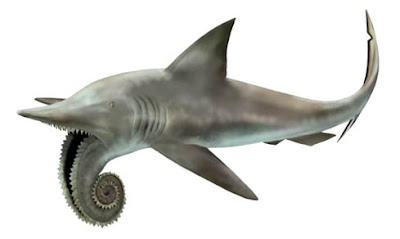 Helicoprion ฉลามปากแส้หนาม เป็นปลาดึกดำบรรพ์ที่ได้สูญพันธุ์ไปกว่า 225 ล้านปีล่วงมาแล้ว จึงมีรูปร่างพิศดาร เกินกว่าจินตนาการ โดยมีปากล่างม้วนเป็นวงคล้ายปากของผีเสื้อ แถมปากที่ม้วนนั้นยังเต็มไปด้วยเขี้ยว และฟันมากมาย