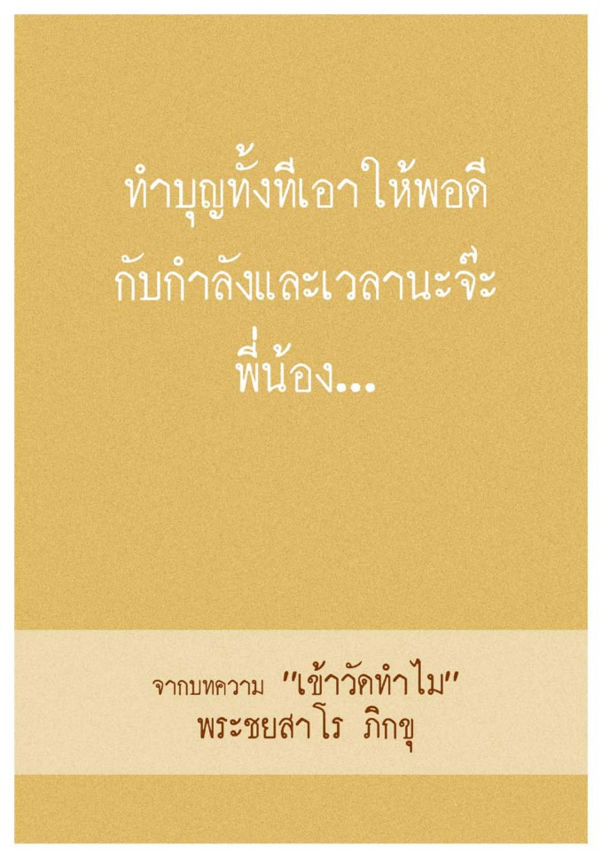 ไม่ต้องเห่อบ้าจี้ตามเขา เข้าวัดไม่ต้องแคร์แม้ต้องไปคนเดียว ทำวัดเีดียวแต่ทำได้เต็มที่