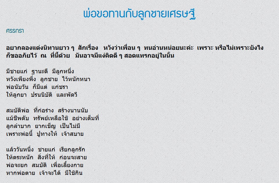 เพื่อนบางคนคงสงสัยว่า ศรรกราคือใคร เป็นนามปากกาของ น้องสาวเถ้าแก่เนี่ยเองค่ะ จะใช้เวลาแต่งกลอน