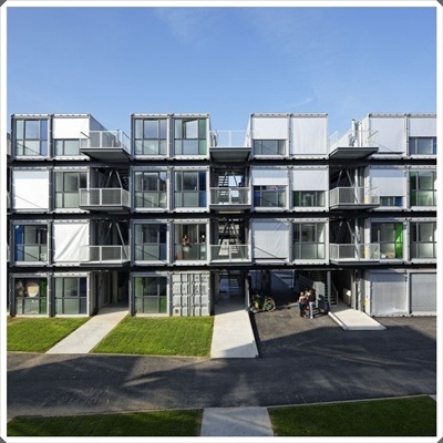 เชื่อมั้ยครับว่า หอพักนักศึกษาแห่งนี้สร้างขึ้นมาจากตู้คอนเทนเนอร์! แต่กลับสามารถนำมาตกแต่งให้สวยงามได้ในสไตล์โมเดิร์น ที่ดูโปร่งสบาย ภายในห้องพักยังมีห้องน้ำและครัวส่วนตัวด้วย ตัวอาคารสร้างให้มีใต้ถุนสูงเพื่อเป็นที่จอดจักรยาน มีสวนหย่อม และที่นั่งเล่นสบายๆ สำหรับนักศึกษา