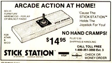 บนปกหลัง และข่าวผลิตภัณฑ์ใหม่ๆ ของนิตยสาร Electronic Games ประจำปี ค.ศ. 1982 และ 1983